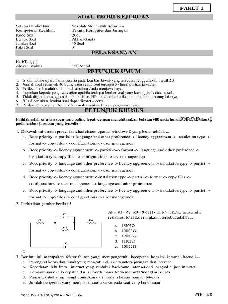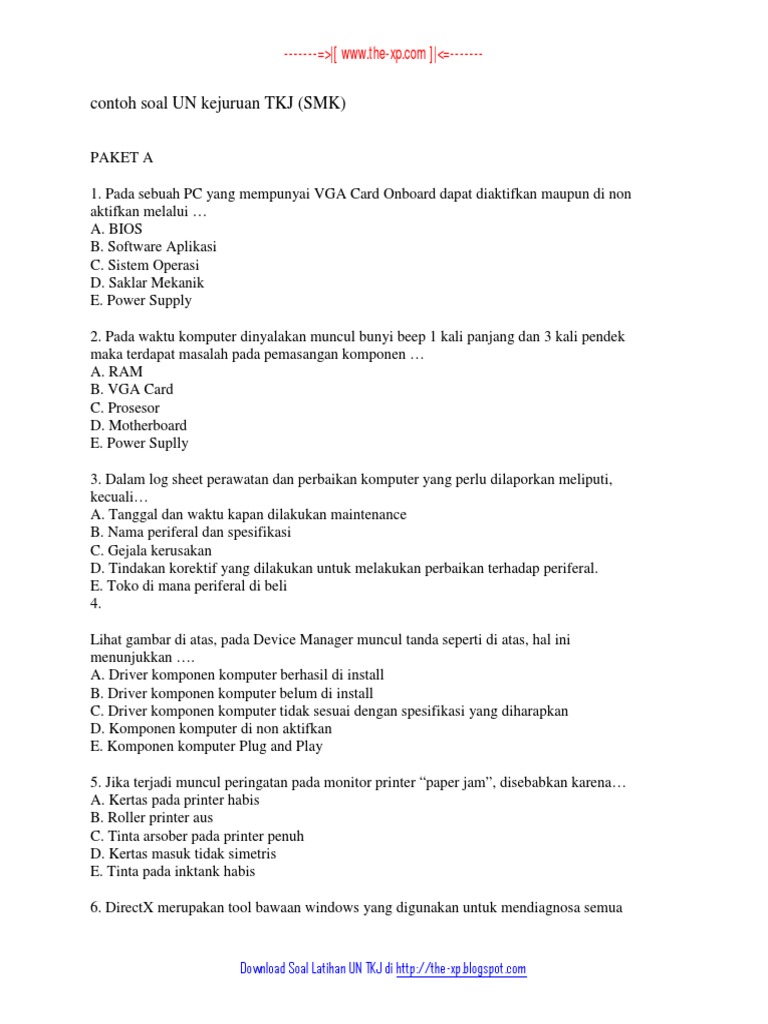 Latihan soal un smk produktif tkj beserta kuncinya. Teknologi virtualisasi hanyalah berupa aplikasi atau software, teknologi virtualisasi tidak dapat berjalan dengan sempurna tanpa didukung infrastruktur yang baik dan solid. Teks perintah untuk melihat tabel routing pada windows adalah … a. Konektor yang terhubungke printer dotmatrix jenis lpt port, ditunjukkan pada nomor. Latihan soal un produktif tkj smk 2016 remove excerpt questions and answers 1.