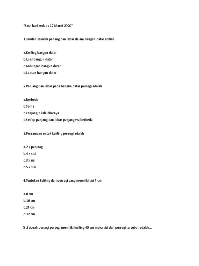 Maybe you would like to learn more about one of these? Tentukan keliling bangun datar jika panjangnya 16 cm dan lebarnya 20 cm. We did not find results for: Check spelling or type a new query.